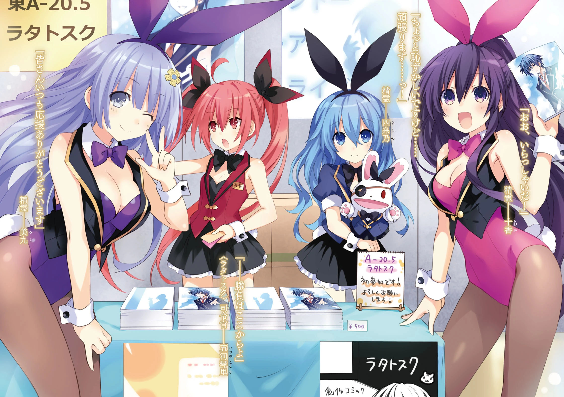 After Kotori issued the sales challenge to Nia, each Spirit submitted their own illustration of Shido in order to see who can be the main artist. Yoshino’s drawing, while cute, was only at the level of a elementary student, so it couldn’t be used. Afterwards, Yoshino congratulates Natsumi for being the main artist. After the doujin was almost done, Shido sees that Yoshino’s group was just as tired as they were. They reply that they’ve been working on a secret project and would tell them during Comico. At the booth in Comico, Yoshino and the others reveal that they had designed bunny girl costumes. Throughout the day, Yoshino worked as one of the sales girls. In the end, they managed to tie with Nia in sales and Nia agreed to give Shido a second chance.